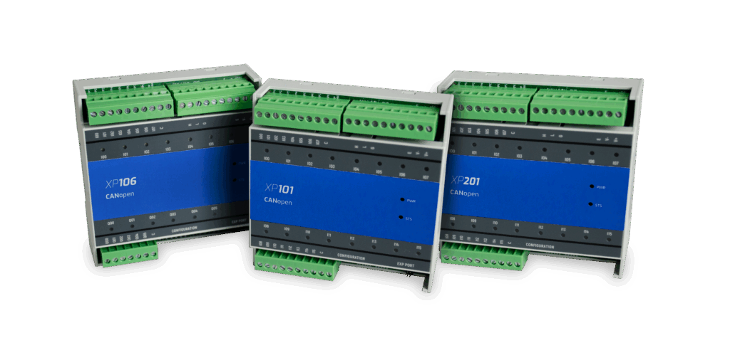 The XP101, XP106, XP201, XP600, and XP610 models are I/O modules that offer expansion solutions for the Nexto XP family. With a compact design, they connect with the PLC through the CANopen protocol, acting in slave mode.